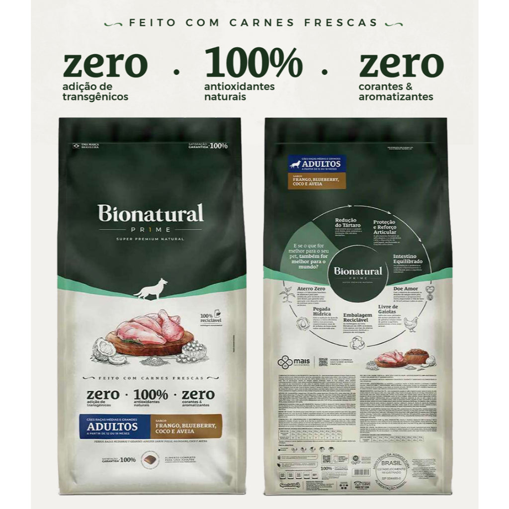 Ração Bionatural Prime Cães Adultos Raças Médias e Grandes – Sabor Frango 🍗