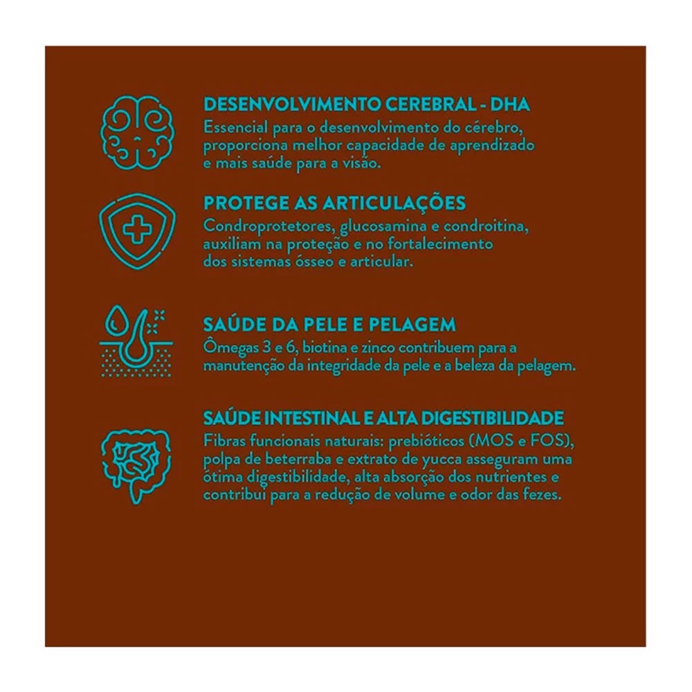 🌟 Ingredientes selecionados que promovem digestão equilibrada e pelagem macia e brilhante.